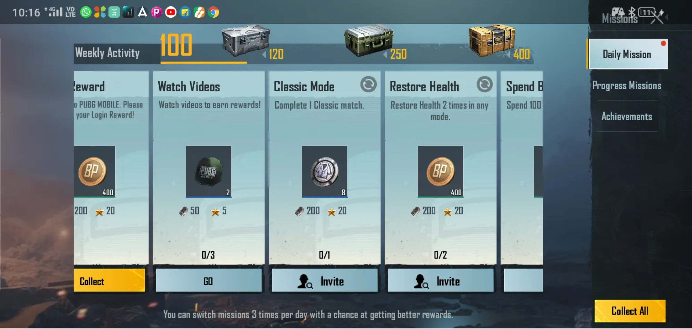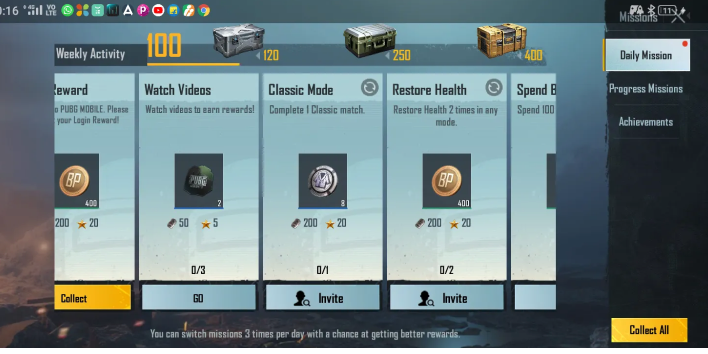 Now there is one feature, I need to focus on. It’s called Royal Pass (RP). For those unfamiliar with the term, PUBG progresses in seasons and each season lasts for roughly 3 months. Apart from the normal matches, there will be small tasks that a player should complete within each match he plays. For every completed task the player receives 10 or 20 coins. Upon receiving 100 coins, the player will get 1 Royal Pass (RP). RP can also be considered as a player’s rank. Keep in mind that these RP’s reset after each season. And the players will also be gifted with some other accessories and gadgets that can be used inside the game upon receiving 10 or 20 RPs. This means that the player gets something new every 2 or 3 games. The player has to earn them; in other words, the player has to “progress” to earn his gifts. Of course, there is an option for the players to not chase the RP’s and just keep playing the game. That’s what I initially did while playing PUBG. But when you find that your co-player/friends are getting new costumes or unlocking new weapons, while you are stuck at level 1 even though you have been playing the game regularly, you tend to hunt for RP’s. When you start hunting for RP’s, you, in turn, spend more time playing the game.